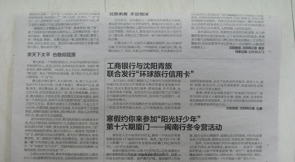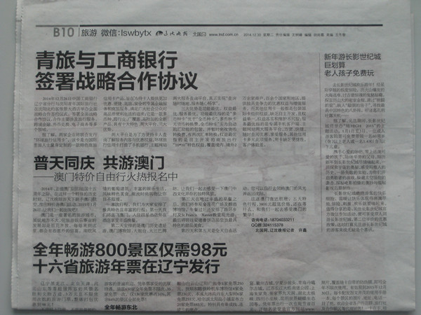 2014年12月26日中國工商銀行遼寧分行與沈陽青年國際旅行社在沈陽北約客維景大酒店舉辦全面戰(zhàn)略合作簽約儀式,簽署全面戰(zhàn)略合作協(xié)議,合作主要涉及旅行服務(wù)、跨境金融、外幣兌換、電子商務(wù)等多個領(lǐng)域。兩家企業(yè)將聯(lián)合發(fā)行“環(huán)球旅行信用卡”,該卡是為國際差旅人士定制的商旅信用卡!