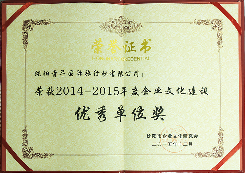 沈陽青年國際旅行社獲得企業(yè)文化建設優(yōu)秀單位獎