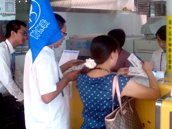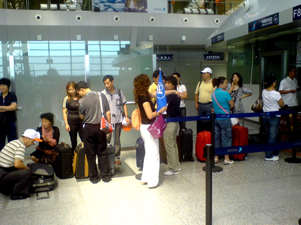 沈陽青旅“海峽情”臺灣旅游團正在辦理登機手續(xù)