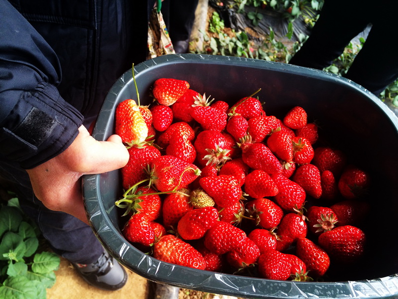在溫室草莓大棚,大家盡情享受親近自然、自己動(dòng)手采摘的樂趣。