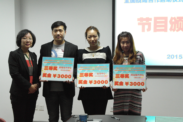 在年會(huì)結(jié)束后,青旅官網(wǎng)對(duì)年會(huì)節(jié)目進(jìn)行了公開(kāi)化的網(wǎng)站投票,根據(jù)投票結(jié)果,經(jīng)領(lǐng)導(dǎo)班子集體討論決定出了最終獲獎(jiǎng)名單。在頒獎(jiǎng)晚會(huì)上,由董事長(zhǎng)倪琛善先生、總經(jīng)理張新宇女士等公司領(lǐng)導(dǎo)對(duì)獲獎(jiǎng)單位予以表彰,在對(duì)獲得一等獎(jiǎng)的直客出境中心進(jìn)行頒獎(jiǎng)過(guò)后,倪琛善董事對(duì)在此次年會(huì)中積極參與的員工進(jìn)行了鼓勵(lì),對(duì)新年工作展開(kāi)了展望,并對(duì)公司全體員工致以新春祝福。